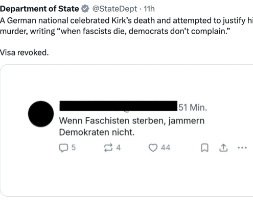 It's bad enough that the State Department using free speech about Charlie Kirk to exclude purported visa holders. It's still worse that two of six claimed accounts don't do what State accuses. But the dragnet they must have used to get this far is pure fascism.