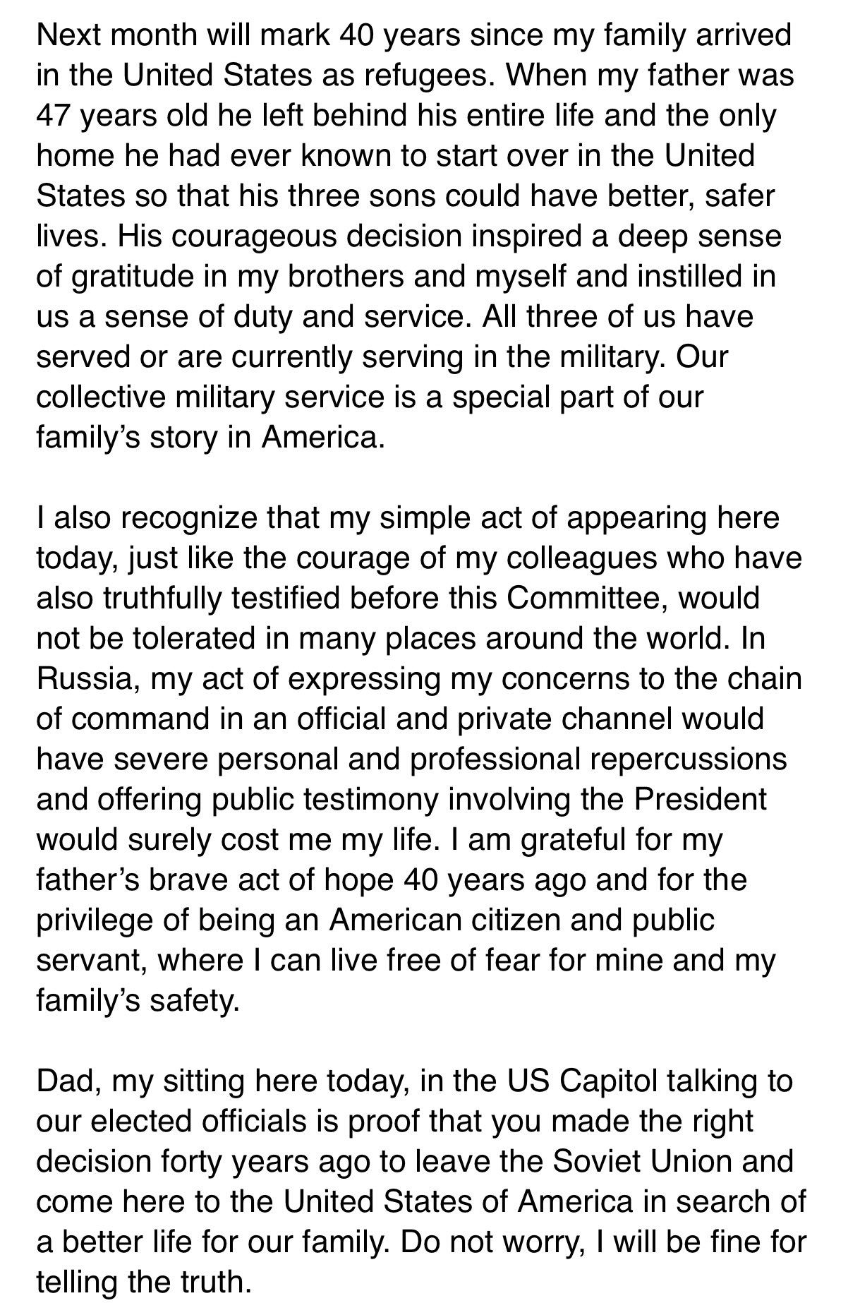 Vindman’s closing remarks, in case you missed them: