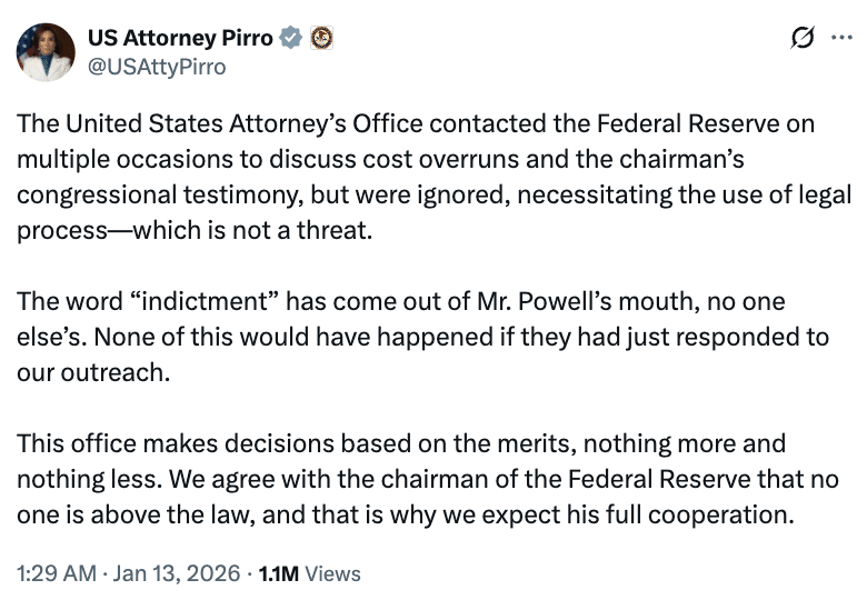 A slew of outlets — starting with MS and including NYT but not including ABC, which usually gets the details right — have reported the firing of Robert McBride because, the MS headline claims, he “declined to pursue James Comey case.” All suggested that, even with the appeal of Lindsey Halligan’s firing before the Fourth Circuit (the Fourth just granted DOJ’s request to stall two weeks and keep the two appeals consolidated), McBride’s sins involved recharging the case in EDVA, even though DOJ abandoned its attempts to reindict Letitia James (on the mortgage fraud; now they’re pursuing hairdresser fraud) before it appealed.